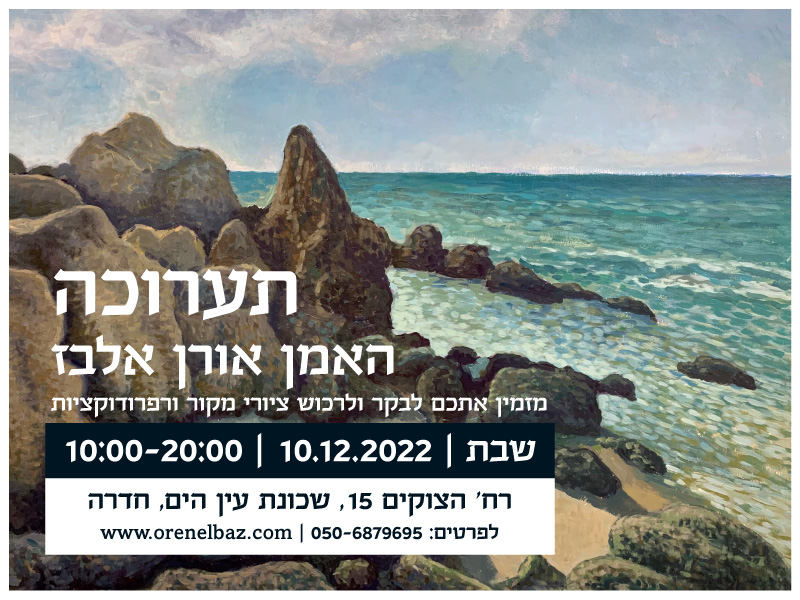 אני שמח להזמינכם לתערוכתי הבאה, אשר תתקיים ביום שבת, עשרה בדצמבר 2022, בין השעות 10:00 ו-20:00, ברחוב הצוקים 15, שכונת עין הים בחדרה. בתערוכה יוצגו ציורי מקור מן השנתיים האחרונות, לצד רפרודוקציות של איורים דיגיטליים אשר יצרתי במהלך השנים. כל העבודות מוצעות למכירה, וניתן לשלם במזומן, באמצעות צ׳ק או באפליקציית ביט. לפרטים נוספים אנא צרו קשר.